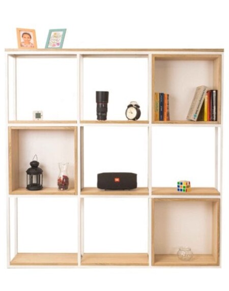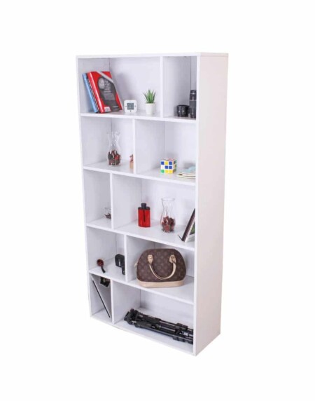 The bookcase with a modern and new design, which is characterized by dividing the shelves into different areas to Contain all your books and pictures in your office or home. Made of high-quality Materials.