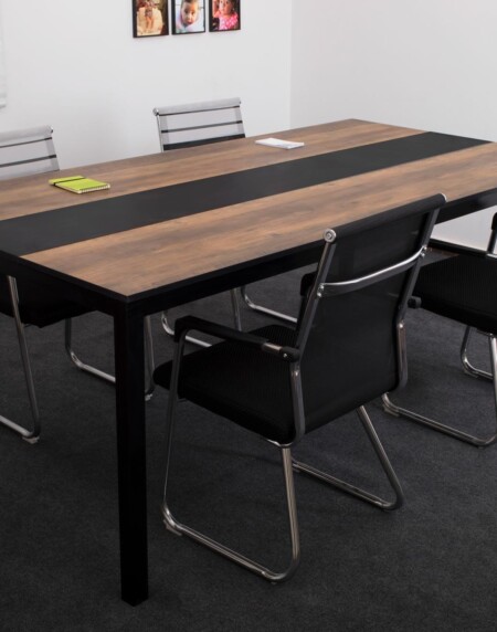 Elegant and Modern rectangular meeting table (220 cm * 110 cm) with Dark wooden colors. A great conference table is durable and easy to clean, so it’s always ready for every meeting.