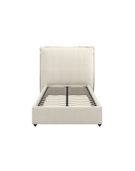 Buy nowA modern, durable bed frame combining a black steel structure with natural wood panels for a clean and warm look. Built with strong wooden slats to support your mattress without a box spring.